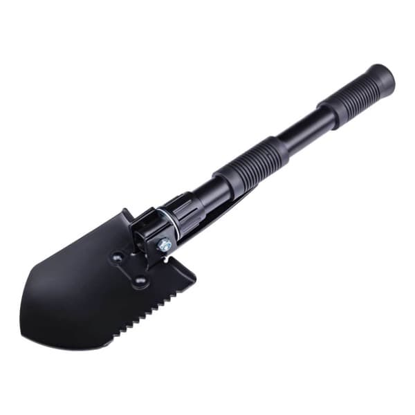 Robuster Mini-Klappspaten aus A3 Stahl mit Sägezahnung und Spitzhacke. Durch Drehverschluss im 90°/180° Winkel arretierbar. Inkl. Nylon-Etui mit Gürtelschlaufe.