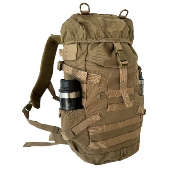 Robuster Outdoor-Rucksack in Anthrazit für Freizeit, Tagestouren und Bushcraft. Mit MOLLE-Schlaufen zur flexiblen Befestigung von Ausrüstung, geräumigem Hauptfach, praktischem Deckelfach, gepolstertem Tragesystem und integrierter Notsignalpfeife. Ideal für zuverlässige Abenteuer unterwegs.